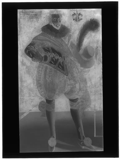| Keywords: Porträtt från 1623 på William Mann - Skoklosters slott - 51629-negative.tif William Mann kapten plain text sv Helfigur stående fas höger <br/>Höger hand i sidan vänster hand håller plymagerad hatt Vit tröja med skört och röda rosetter röda pluderhosen med guldgaloner röd axelbindel värja Enögd <br/>Inskrift överst t v CAPPITEIN WILLVM MAN NATVS ANo 1590 FECIT ANNO 1623 <br/>I övre högra hörnet vapensköld med stående naken man original caption Porträtt från 1623 på William Mann 1623 size mm 1070 1820 SKO Herman Wrangel riksråd fältmarskalk place of origin original filename LN_A02666_002666 23524 inventory number SKO 2266 51629 CC0 Porträtt från 1623 på William Mann - Skoklosters slott - 51629 tif Uncategorized 2015 March 17 |