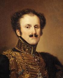 Keywords: Porträtt. Magnus Brahe. Södermark - Skoklosters slott - 30570.tif LSH artwork creator Olof Johan Södermark Överstelöjtnant Magnus Brahe greve riksmarskalk plain text Midjebild fas höger Uniform med pälsbrämad dolma serafimer- och svärdordens kedja ordenstecken Karl XIII s orden svärdsorden serafimerorden på dolman tecken för riddare med stora korset av svärdsorden tapperhetsmedalj serafimerkraschan och Karl XIII s ordens kapptecken <br/>Signerad O J Södermark 1831 <br/>Kilad spännram <br/>Förgylld empireram av furu med pastellageornament På baksidan lapp med bläcktext Grefve Magnus Brahe f 1790 d 1844 en av Rikets herrar Ramlistens bredd 95 mm original caption Porträtt Magnus Brahe Södermark 1831 oil on canvas size mm 660 800 SKO place of origin original filename sm_t7220_1943 23185 inventory number SKO 1943 30570 PD Samuel Uhrdin Samuel Uhrdin Portrait paintings Media contributed by LSH unmatched creator Olof Johan Södermark Media contributed by LSH 2013-10