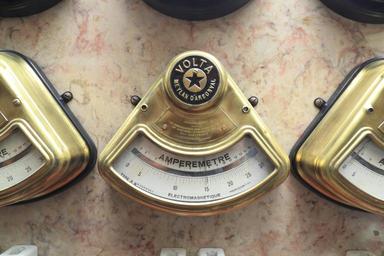 Keywords: portugal lisbon electricity museum ampmeter ampere instrument scale needle measure copper volta power plant generation generator