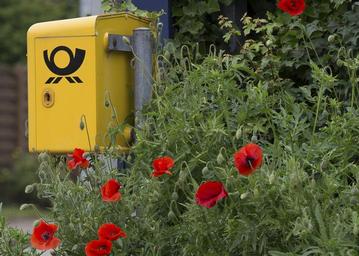 Keywords: post federal post office mailbox poppy klatschmohn flower deutsche post postman