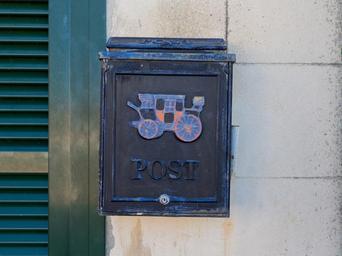 Keywords: post mailbox letter boxes blue wall home window post mail box old