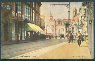 Keywords: Postal Valparaíso, calle Condell, princicpios siglo 20.JPG es Se ve la calle Condell hacia la plaza Victoria principios del siglo XX Unknown Unknown author PD-Chile Uploaded with UploadWizard Postcards of Valparaíso Calle Condell Iglesia del Espíritu Santo Valparaíso |