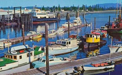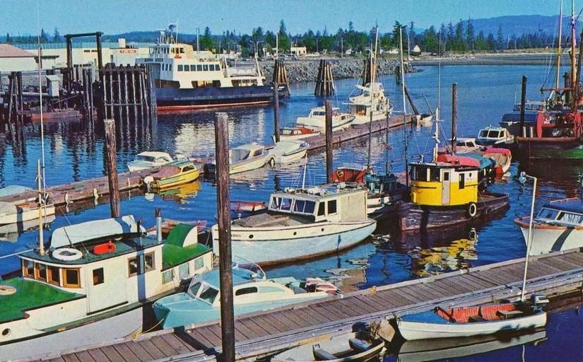 Keywords: outdoor waterfront water "CAMPBELL RIVER MARINA Vancouver Island, B. C. Quadra Ferry at slip in background." From an Ektachrome transparency © G. Morris Taylor, Box 465, Sta. A, Vancouver, Canada Taylorchrome Color Card. Printed in U.S.A. Campbell River Marina at downtown Campbell River, BC on Vancouver Island next to the Quadra Island ferry dock. The BC Highways Department ferry MV Quadra Queen (launched 1960) is seen in the background. MV Quadra Queen: www.geocities.ws/ferries_bc/profiles/obcf_nicola.html "CAMPBELL RIVER MARINA Vancouver Island, B. C. Quadra Ferry at slip in background." From an Ektachrome transparency © G. Morris Taylor, Box 465, Sta. A, Vancouver, Canada Taylorchrome Color Card. Printed in U.S.A. Campbell River Marina at downtown Campbell River, BC on Vancouver Island next to the Quadra Island ferry dock. The BC Highways Department ferry MV Quadra Queen (launched 1960) is seen in the background. MV Quadra Queen: www.geocities.ws/ferries_bc/profiles/obcf_nicola.html |