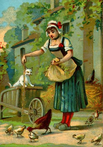 Keywords: postcard chickens france peasant girl girl woman portrait lady people old vintage rural