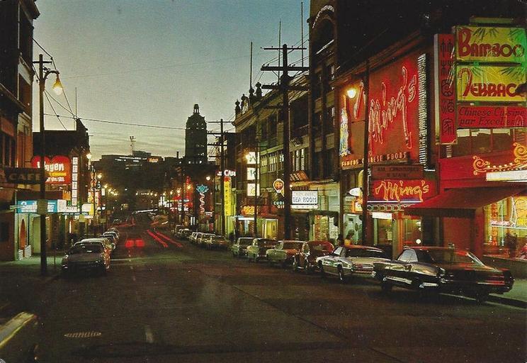 Keywords: road city architecture outdoor night intersection "CHINATOWN AT NIGHT Vancouver, British Columbia, Canada Vancouver's Chinatown is Canada's largest and rivals that of San Francisco. Centered on East Pender Street, between Carrall and Main, this colorful section of the city caters to tourists from all over the world. Fine traditional foods, imported oriental merchandise and souvenirs are available to the visitor." Photo by Dorse McTaggart. Majestic Post Card. A Traveltime Product. Published by Natural Color Productions Ltd., Richmond, B.C. Printed in Canada by Lawson Graphics Pacific Limited, Vancouver, British Columbia. Chinatown at night on 100-block East Pender Street, Vancouver, BC. "CHINATOWN AT NIGHT Vancouver, British Columbia, Canada Vancouver's Chinatown is Canada's largest and rivals that of San Francisco. Centered on East Pender Street, between Carrall and Main, this colorful section of the city caters to tourists from all over the world. Fine traditional foods, imported oriental merchandise and souvenirs are available to the visitor." Photo by Dorse McTaggart. Majestic Post Card. A Traveltime Product. Published by Natural Color Productions Ltd., Richmond, B.C. Printed in Canada by Lawson Graphics Pacific Limited, Vancouver, British Columbia. Chinatown at night on 100-block East Pender Street, Vancouver, BC. |