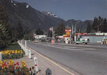 Keywords: outdoor road "HOPE British Columbia, Canada Here on the banks of the mighty Fraser River one can enjoy the awe-inspiring scenery, clean fresh air and beauty found in this unique little town, enhanced by the flowers, green grass and trees. Photo by Ken Buchanan" LC-869 Super Card Post Card. SC-3571. Dist. by Lakeside Colour Productions Ltd.•1443 Lakeside S. Dr., Williams Lake, B.C., Canada V2G 3A7. Printed in Canada by Lawson Graphics Pacific Limited, Vancouver, British Columbia. View looking north along Water Avenue (Trans-Canada Highway, Hwy. 1) from the intersection at Wallace Street in Hope, BC. "HOPE British Columbia, Canada Here on the banks of the mighty Fraser River one can enjoy the awe-inspiring scenery, clean fresh air and beauty found in this unique little town, enhanced by the flowers, green grass and trees. Photo by Ken Buchanan" LC-869 Super Card Post Card. SC-3571. Dist. by Lakeside Colour Productions Ltd.•1443 Lakeside S. Dr., Williams Lake, B.C., Canada V2G 3A7. Printed in Canada by Lawson Graphics Pacific Limited, Vancouver, British Columbia. View looking north along Water Avenue (Trans-Canada Highway, Hwy. 1) from the intersection at Wallace Street in Hope, BC. |