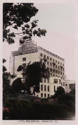 | Keywords: photo border "Hotel Malaspina, Nanaimo, B.C." Malaspina Hotel, 38 Front Street, Nanaimo, BC on Vancouver Island. Malaspina Hotel Thomas Stevenson, Manager. An Impressively Good Modern Hotel. Rates from $1.75. Good Coffee Shop, Soda Fountain and Dining Room with Wonderful Historical Murals. Front St. Phone 1400. [1939-45] Opened 1927. Closed 1984. Demolished 1996. "Hotel Malaspina, Nanaimo, B.C." Malaspina Hotel, 38 Front Street, Nanaimo, BC on Vancouver Island. Malaspina Hotel Thomas Stevenson, Manager. An Impressively Good Modern Hotel. Rates from $1.75. Good Coffee Shop, Soda Fountain and Dining Room with Wonderful Historical Murals. Front St. Phone 1400. [1939-45] Opened 1927. Closed 1984. Demolished 1996. |