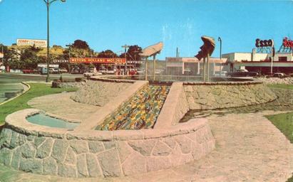 | Keywords: outdoor "Italian Fountain — The colourful Italian Fountain was presented in 1958 by Nanaimo citizens of Italian origin to the City of Nanaimo commemorating British Columbia's 100th anniversary. The fountain depicts the life of the salmon." Color Photo by W.J.L. Gibbons, AMPA. Published and distributed by Stan V. Wright & Co. Victoria, B.C. Extant at Italian Square Park, Nanaimo, BC on Vancouver Island. "Italian Fountain — The colourful Italian Fountain was presented in 1958 by Nanaimo citizens of Italian origin to the City of Nanaimo commemorating British Columbia's 100th anniversary. The fountain depicts the life of the salmon." Color Photo by W.J.L. Gibbons, AMPA. Published and distributed by Stan V. Wright & Co. Victoria, B.C. Extant at Italian Square Park, Nanaimo, BC on Vancouver Island. |