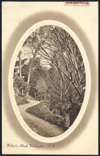 | Keywords: circle round photo border Shows a view of a winding path in Wilton's Bush, in an oval frame. Quantity: 1 colour photo-mechanical print(s) on postcard.. Physical Description: Photolithograph , 143 x 91 mm. Postcard. Wilton's Bush, Wellington, N.Z. New Zealand post card (carte postale). F.T. series no. 101. Printed in Saxony. [ca 1910]. [Postcards collected by May Stephens. 1900-1920s]. Ref: Eph-POSTCARD-Stephens-15. Alexander Turnbull Library, Wellington, New Zealand. natlib.govt.nz/records/23244716 Shows a view of a winding path in Wilton's Bush, in an oval frame. Quantity: 1 colour photo-mechanical print(s) on postcard.. Physical Description: Photolithograph , 143 x 91 mm. Postcard. Wilton's Bush, Wellington, N.Z. New Zealand post card (carte postale). F.T. series no. 101. Printed in Saxony. [ca 1910]. [Postcards collected by May Stephens. 1900-1920s]. Ref: Eph-POSTCARD-Stephens-15. Alexander Turnbull Library, Wellington, New Zealand. natlib.govt.nz/records/23244716 |