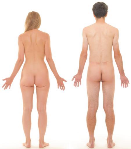 Keywords: Posterior view of human female and male, without labels.png Nude men and women with white background