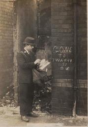 Keywords: postman post address chalk mail mailman delivery uniform sack brickwall 1922 1920s fire monochrome Photograph of the aftermath of the Great Timber Yard Fire in Hartlepool, 1922. Shows the postman attempting to deliver letters to the ruined houses. Forwarding addresses have been chalked on the walls in cases where victims have gone to stay with kindly neighbours, relatives or friends, their homes having been destroyed. Photograph Collection No : 366 Images from Hartlepool Cultural Services that are part of The Commons on Flickr are labeled 'no known copyright restrictions' indicating that Hartlepool Cultural Services is unaware of any current copyright restrictions on these images either because the copyright is waived or the term of copyright has expired. Commercial use of images is not permitted. Applications for commercial use or for higher quality reproductions should be made to Hartlepool Cultural Services, Sir William Gray House, Clarence Road, Hartlepool, TS24 8BT. When using the images please credit 'Hartlepool Cultural Services'. Photograph of the aftermath of the Great Timber Yard Fire in Hartlepool, 1922. Shows the postman attempting to deliver letters to the ruined houses. Forwarding addresses have been chalked on the walls in cases where victims have gone to stay with kindly neighbours, relatives or friends, their homes having been destroyed. Photograph Collection No : 366 Images from Hartlepool Cultural Services that are part of The Commons on Flickr are labeled 'no known copyright restrictions' indicating that Hartlepool Cultural Services is unaware of any current copyright restrictions on these images either because the copyright is waived or the term of copyright has expired. Commercial use of images is not permitted. Applications for commercial use or for higher quality reproductions should be made to Hartlepool Cultural Services, Sir William Gray House, Clarence Road, Hartlepool, TS24 8BT. When using the images please credit 'Hartlepool Cultural Services'. |