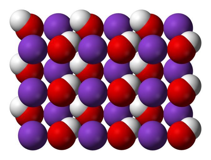 | Keywords: Potassium-hydroxide-xtal-3D-vdW.png Space-filling model of part of the crystal structure of potassium hydroxide KOH Crystal structure data from cite journal Structure of Potassium Hydroxide An X-Ray and Infrared Study James A Ibers Junji Kumamoto and Roberiikt G Snyder J Chem Phys 1960 33 4 1164-1170 10 1063/1 1731351 Image generated in http //accelrys com/products/discovery-studio/visualization/discovery-studio-visualizer html Accelrys DS Visualizer Own 2008-07-20 Ben Mills Benjah-bmm27 Images by Ben Mills Potassium hydroxide Crystal structures of hydroxides Crystal structures of potassium salts |