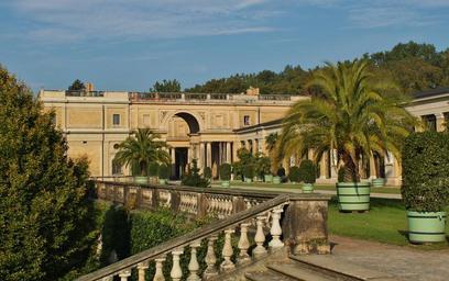 Keywords: potsdam schloss sans souci orangery germany castle tourist attraction architecture places of interest building facade gorgeous arches historically famous pillar old stone stairway park garden palm trees mediterranean summer botanical garden botanical |
