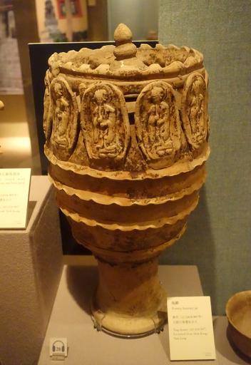 | Keywords: Pottery funerary jar, Tang dynasty, from Shek Kong, Yuen Long - Hong Kong Museum of History - DSC00890.JPG en Exhibit in the Hong Kong Museum of History Hong Kong This artwork is old enough so that it is in the public domain Photography was permitted in the museum without restriction 2014-07-27 02 06 16 own Daderot other versions PD-100 cc-zero Chinese ceramics in the Hong Kong Museum of History Uploaded with UploadWizard Ceramics of the Tang Dynasty | ||||