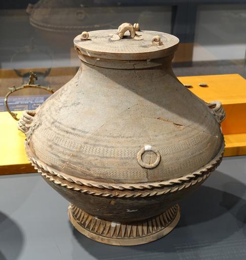 | Keywords: Pottery jar, Nanyue Kingdom period, from M69 at the construction site of Yulongting, Taihei Gang, Guangzho - Hong Kong Museum of History - DSC00781.JPG en Exhibit in the Hong Kong Museum of History Hong Kong This artwork is old enough so that it is in the public domain Photography was permitted in the museum without restriction 2014-07-27 01 35 28 own Daderot other versions PD-100 cc-zero Chinese ceramics in the Hong Kong Museum of History Uploaded with UploadWizard Ceramics of Nanyue | ||||