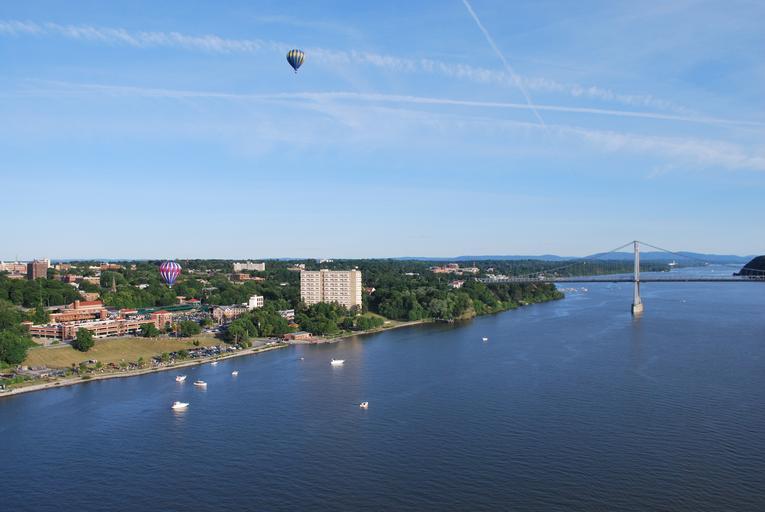 Keywords: Poughkeepsie, NY with evening balloon take-off 2.JPG Poughkeepsie New York along the Hudson River during an evening take-off of two hot-air balloons as seen from the Walkway Over the Hudson pedestrian bridge own Juliancolton 2010-07-02 41 710454 -73 94419 Poughkeepsie New York Hot air balloons of the United States Hudson River from Walkway Over the Hudson Images by Juliancolton |
