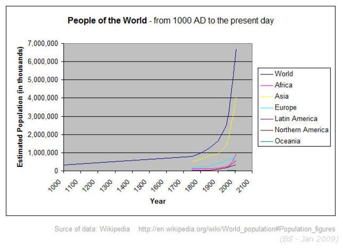 | Keywords: Poulation-since-1000--.jpg It can clearly be seen that the total world population was steadily rising during the period 1000AD to 1800AD There was then a sharp increase from the beginning of the 20th century followed by a very dramatic acceleration in population growth from the middle of the 20th century around 1950 onwards Own work - chart developed based on data found on http //en wikipedia org/wiki/World_population Population_figures BS 2009-01-24 Unidentified graphs | ||||