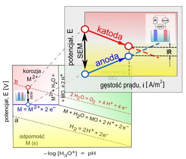 Keywords: Pourtier Evans.svg en Electrochemistry of corrosion; Pourbaix Diagram and Evans Diagram principle pl Elektrochemia korozji; wykres Pourbaix i wykres Evansa zasady own Joanna Kośmider 2011-05-13 Cc-zero Evans diagrams