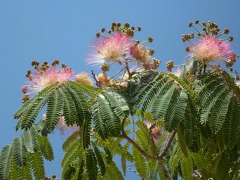 Keywords: powder puff shrub bush bloom flowers pink mediterranean ornamental shrub