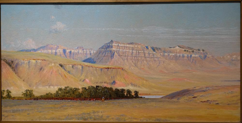 | Keywords: Powder River, by Frank Reaugh, 1915, oil on canvas - Harry Ransom Center - University of Texas at Austin - DSC08553.jpg en Exhibit in the Harry Ransom Center - University of Texas at Austin Austin Texas USA This work is old enough so that it is in the public domain 2015-11-17 17 08 13 own Daderot other versions PD-old-70 cc-zero Paintings by Frank Reaugh in the Harry Ransom Center | ||||