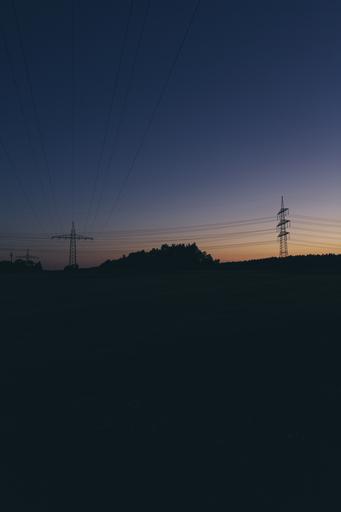 Keywords: power line mast electric energy current line high voltage electricity power poles masts cable strommast power supply power lines upper lines reinforce technology sunset landline blue