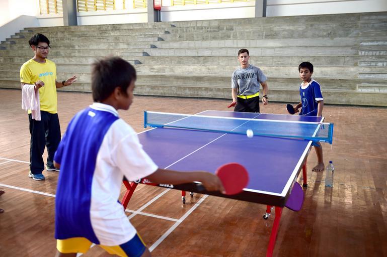 | Keywords: PP15 Sports Day held in Kiribati 150603-N-HY254-146.jpg en 150603-N-HY254-146 TARAWA Kiribati June 3 2015 Sgt 1st Class Travis Shultz from Corunna Indiana and currently assigned to the 84th Civil Affairs Battalion plays a game of table tennis with youth members of the Kiribati National Table Tennis Team at the Betio Sports Complex during Pacific Partnership 2015 Now in its 10th iteration Pacific Partnership is the largest annual multilateral humanitarian assistance and disaster relief preparedness mission conducted in the Indo-Asia-Pacific region While training for crisis conditions Pacific Partnership missions have provided medical care to approximately 270 000 patients and veterinary services to more than 38 000 animals Additionally PP15 has provided critical infrastructure development to host nations through the completion of more than 180 engineering projects U S Navy photo by Chief Mass Communication Specialist Jonathan R Kulp/Released 2015-06-03 Chief Petty Officer Jonathan Kulp https //www dvidshub net/image/1972646 150603-N-HY254-146 2015-06-03 14 10 TARAWA KI PD-USGov-Military-Navy Pacific Partnership 2015 Images from DoD uploaded by Fæ |
