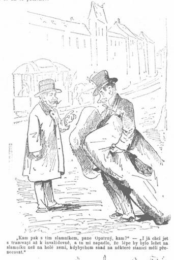 | Keywords: Prague horsecar cartoon3 1875 Kolar.png Where do you carry this matress Mr Careful ” I want to travel by tram all the way to Invalidovna and do not want to sleep on the floor in case we have to stay overnight at some station A cartoon from a series dedicated to a recently opened horsecar in Prague Bohemia http //archiv ucl cas cz/index php path HumL/17 1875/40/317 png HumoristickĂ© listy year 1875 issue 40 digitized by Czech Academy of Sciences 1875-10-02 František Karel Kolár 1829-1895 PD-old Historical images of horse trams in Prague Cartoons of the Czech Republic František Karel Kolár HumoristickĂ© listy Unidentified locations in Prague - historical images Prague in the 1870s 1875 in tram transport |