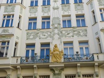 Keywords: prague old town city czech republic capital facade relief fig statue woman balcony