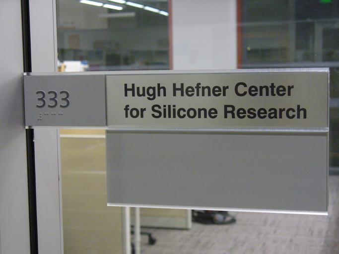 Keywords: PrankSign3.jpg en Prank sign<br> Hugh Hefner Center for Silicone Research <br>which has been installed as a yoke by students at Stanford University Stanford University often names rooms or entire buildings after generous donors <br> However Hugh Hefner the founder of Playboy magazine is none of them <br> Also notice that the sign mentions Silicone which is used for breast implants instead of Silicon which is used for semiconductor research at Stanford University This sign is located at Room 333<br> James Anna Marie Spilker Engineering Applied Sciences Building<br> 348 Via Pueblo Mall<br> Stanford CA 94305<br> U S A 37 4288 degrees north<br> 122 1740 degrees west 2013-01-21 own Silicon Researcher <gallery> File PrankSign1 jpg File PrankSign2 jpg File PrankSign3 jpg </gallery> 37 4288 -122 1740 cc-zero Pranks College life Hugh Hefner Uploaded with UploadWizard Stanford University campus |