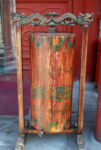 Keywords: Prayer wheel at Miaoying Temple.JPG 妙应寺的转经筒 Own 200712 Shizhao Prayer wheels in China Miaoying Temple Tibetan writing