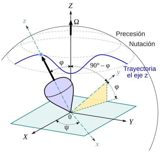 | Keywords: Precession-nutation-xyz-ES.svg en Precession is a change in the orientation of the rotation axis of a rotating body es La precesión es el movimiento asociado con el cambio de dirección en el espacio que experimenta el eje instantáneo de rotación de un cuerpo own 11/06/2010 Caliver Ex profeso para Wikipedia -the free encyclopedia- Astronomical diagrams |