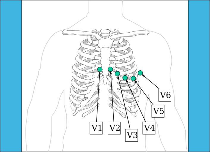 Keywords: Precordial Leads.svg Precordial leads standard placement of the precordial leads for electrocardiography using Image Human_skeleton_front_no-text_no-color svg inspired by Precordial_Leads jpg Own 2008-01-30 Twisp SVG health