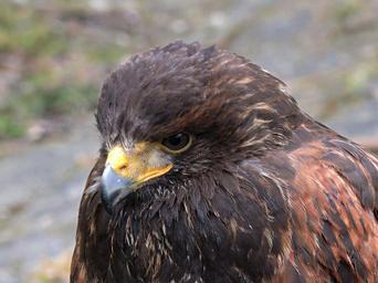 Keywords: predator buzzard bird buzzard harris feather beak eye falconry sitting wild forest parabuteo unicinctus