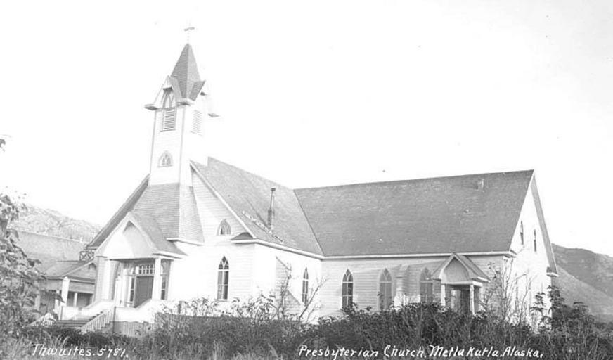 | Keywords: Presbyterian Church, Metlakatla, early 1920s (THWAITES 371).jpeg Photograph Creator John E Thwaites Caption on image Presbyterian Church Metlakatla Alaska PH Coll 247 856<br/>Metlakatla is located at Port Chester on the west coast of Annette Island 15 miles south of Ketchikan Metlakatla means saltwater channel passage and was founded by a group of Canadian Tsimshians who migrated from Prince Rupert British Columbia in 1887 seeking religious freedom They were led by a Scottish lay priest in the Anglican Church Church of England Reverend William Duncan who had begun his missionary work with the Tsimshians at Fort Simpson B C in 1857 Rev Duncan traveled to Washington D C around 1886 to personally request land from President Grover Cleveland for the Tsimshians The Island was selected by a local search committee and by 1890 there were 823 residents Congress declared Annette Island a federal Indian reservation in 1891 Residents built a church a school a sawmill and a cannery and constructed homes in an orderly grid pattern Duncan continued to inspire and lead his followers until his death in 1918 In 1927 the community built a hydroelectric plant During World War II the U S Army constructed a large air base a few miles from town which was later used for commercial amphibian flights to Ketchikan The U S Coast Guard also maintained a base on the Island until 1976 The Annette Island Reserve remains the only federal reservation for indigenous peoples in Alaska Subjects LCTGM Presbyterian churches--Alaska--Metlakatla Subjects LCSH Metlakatla Presbyterian Church Metlakatla Alaska ; Presbyterian church buildings--Alaska--Metlakatla depicted place Metlakatla Alaska ca 1920s Institution University of Washington UWASH-THWAITES-source accession number thwaites 371 PD-old-auto-1923 1940 Information field Order Number THW372 Images from the John E Thwaites Photographs of Alaska Collection to check Presbyterian churches in Alaska Buildings in Metlakatla Alaska |