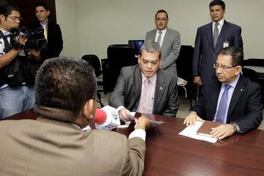 | Keywords: san salvador sansalvador el salvador elsalvador indoor El secretario de comunicaciones de la Presidencia, Eugenio Chicas, y el secretario jurídico de la pesidencia, Rubén Alvarado, presentaron esta tarde ante la Fiscalía General de la República un aviso relacionado al tema de la publicación que hizo un dirigente político del itinerario de vuelo del Presidente de la República. El secretario de comunicaciones de la Presidencia, Eugenio Chicas, y el secretario jurídico de la pesidencia, Rubén Alvarado, presentaron esta tarde ante la Fiscalía General de la República un aviso relacionado al tema de la publicación que hizo un dirigente político del itinerario de vuelo del Presidente de la República. |