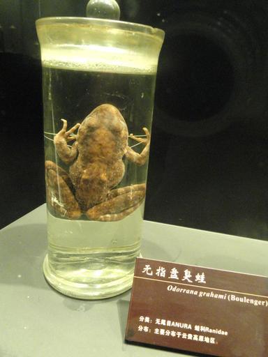 | Keywords: Preserved specimens - Kunming Natural History Museum of Zoology - DSC02412.JPG Preserved specimens in the Kunming Natural History Museum of Zoology 昆明动物博物馆 Kunming Yunnan China I took this photograph 2011-08-10 02 40 15 Daderot Public domain Preserved specimens in the Kunming Natural History Museum of Zoology Odorrana grahami |