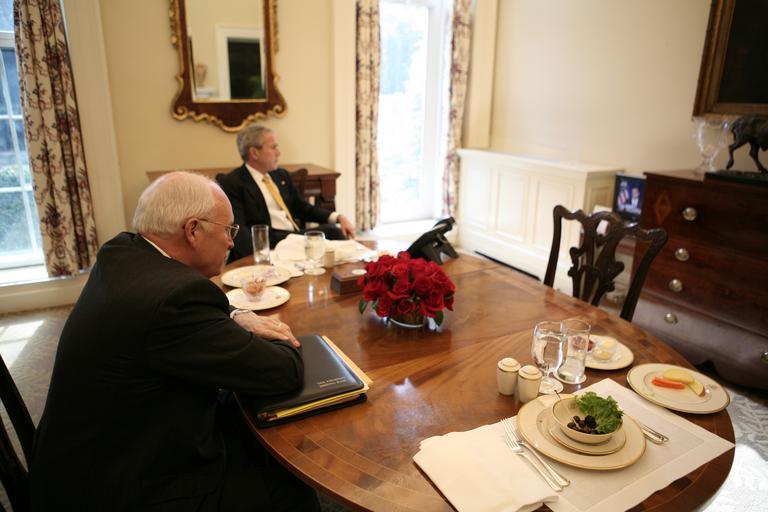 Keywords: u.s. national archives usnationalarchives vice president dick cheney vicepresidentdickcheney vice president richard cheney vicepresidentrichardcheney washington d.c. dc nara:arcid=18545393 indoor table dining table dinner table These images have been released in response to a FOIA request, case number 2014-0012-F, received by the National Archives. For more information on these images, please visit Researching Vice Presidential Materials. These photos will be available in the National Archives Catalog in July 2015. Local Identifier: V020708DB-0219 Created By: President (2001-2009 : Bush). Office of Management and Administration. Office of White House Management. Photography Office. 1/20/2001-1/20/2009 From: Collection: Vice Presidential Records of the Photography Office (George W. Bush Administration), 1/20/2001 - 1/20/2009 Contact: Presidential Materials Division (LM) National Archives Building 7th and Pennsylvania Avenue NW Washington, DC 20408 Phone: 202-357-5200 Fax: 202-357-5939 Production Dates: 2/7/2008 Persistent URL: catalog.archives.gov/id/18545393 Access Restrictions: Unrestricted Use Restrictions: Unrestricted These images have been released in response to a FOIA request, case number 2014-0012-F, received by the National Archives. For more information on these images, please visit Researching Vice Presidential Materials. These photos will be available in the National Archives Catalog in July 2015. Local Identifier: V020708DB-0219 Created By: President (2001-2009 : Bush). Office of Management and Administration. Office of White House Management. Photography Office. 1/20/2001-1/20/2009 From: Collection: Vice Presidential Records of the Photography Office (George W. Bush Administration), 1/20/2001 - 1/20/2009 Contact: Presidential Materials Division (LM) National Archives Building 7th and Pennsylvania Avenue NW Washington, DC 20408 Phone: 202-357-5200 Fax: 202-357-5939 Production Dates: 2/7/2008 Persistent URL: catalog.archives.gov/id/18545393 Access Restrictions: Unrestricted Use Restrictions: Unrestricted
