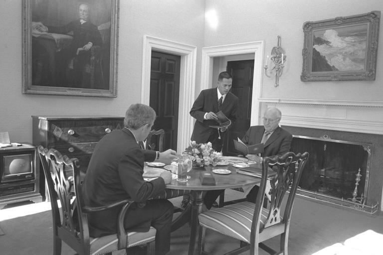 | Keywords: u.s. national archives usnationalarchives vice president dick cheney vicepresidentdickcheney vice president richard cheney vicepresidentrichardcheney nara:arcid=18545777 blackandwhite monochrome indoor table dining table dinner table black and white These images have been released in response to a FOIA request, case number 2014-0012-F, received by the National Archives. For more information on these images, please visit Researching Vice Presidential Materials. These photos will be available in the National Archives Catalog in July 2015. Local Identifier: V73-13 Created By: President (2001-2009 : Bush). Office of Management and Administration. Office of White House Management. Photography Office. 1/20/2001-1/20/2009 From: Collection: Vice Presidential Records of the Photography Office (George W. Bush Administration), 1/20/2001 - 1/20/2009 Contact: Presidential Materials Division (LM) National Archives Building 7th and Pennsylvania Avenue NW Washington, DC 20408 Phone: 202-357-5200 Fax: 202-357-5939 Production Dates: 1/25/2001 Persistent URL: catalog.archives.gov/id/18545777 Access Restrictions: Unrestricted Use Restrictions: Unrestricted These images have been released in response to a FOIA request, case number 2014-0012-F, received by the National Archives. For more information on these images, please visit Researching Vice Presidential Materials. These photos will be available in the National Archives Catalog in July 2015. Local Identifier: V73-13 Created By: President (2001-2009 : Bush). Office of Management and Administration. Office of White House Management. Photography Office. 1/20/2001-1/20/2009 From: Collection: Vice Presidential Records of the Photography Office (George W. Bush Administration), 1/20/2001 - 1/20/2009 Contact: Presidential Materials Division (LM) National Archives Building 7th and Pennsylvania Avenue NW Washington, DC 20408 Phone: 202-357-5200 Fax: 202-357-5939 Production Dates: 1/25/2001 Persistent URL: catalog.archives.gov/id/18545777 Access Restrictions: Unrestricted Use Restrictions: Unrestricted |