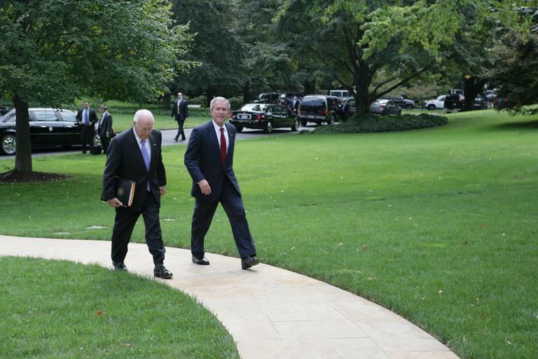 View Original:President_Bush_and_Vice_President_Cheney_Arrive_at_the_White_House.jpg (4992x3328)