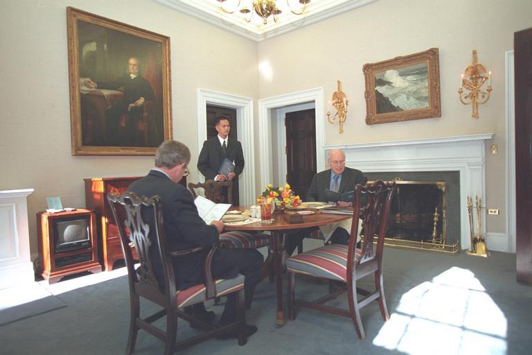 | Keywords: u.s. national archives usnationalarchives vice president dick cheney vicepresidentdickcheney vice president richard cheney vicepresidentrichardcheney nara:arcid=18545784 indoor room building architecture These images have been released in response to a FOIA request, case number 2014-0012-F, received by the National Archives. For more information on these images, please visit Researching Vice Presidential Materials. These photos will be available in the National Archives Catalog in July 2015. Local Identifier: V74-06A Created By: President (2001-2009 : Bush). Office of Management and Administration. Office of White House Management. Photography Office. 1/20/2001-1/20/2009 From: Collection: Vice Presidential Records of the Photography Office (George W. Bush Administration), 1/20/2001 - 1/20/2009 Contact: Presidential Materials Division (LM) National Archives Building 7th and Pennsylvania Avenue NW Washington, DC 20408 Phone: 202-357-5200 Fax: 202-357-5939 Production Dates: 1/25/2001 Persistent URL: catalog.archives.gov/id/18545784 Access Restrictions: Unrestricted Use Restrictions: Unrestricted These images have been released in response to a FOIA request, case number 2014-0012-F, received by the National Archives. For more information on these images, please visit Researching Vice Presidential Materials. These photos will be available in the National Archives Catalog in July 2015. Local Identifier: V74-06A Created By: President (2001-2009 : Bush). Office of Management and Administration. Office of White House Management. Photography Office. 1/20/2001-1/20/2009 From: Collection: Vice Presidential Records of the Photography Office (George W. Bush Administration), 1/20/2001 - 1/20/2009 Contact: Presidential Materials Division (LM) National Archives Building 7th and Pennsylvania Avenue NW Washington, DC 20408 Phone: 202-357-5200 Fax: 202-357-5939 Production Dates: 1/25/2001 Persistent URL: catalog.archives.gov/id/18545784 Access Restrictions: Unrestricted Use Restrictions: Unrestricted |