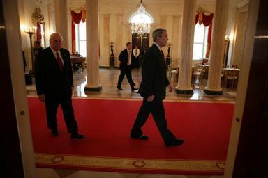 View Original:President_Bush_and_Vice_President_Cheney_Walk_Together_on_the_White_House_State_Floor.jpg (4992x3328)