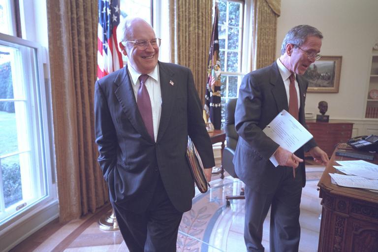 View Original:President_Bush_and_Vice_President_Cheney_in_the_Oval_Office.jpg (3072x2048)