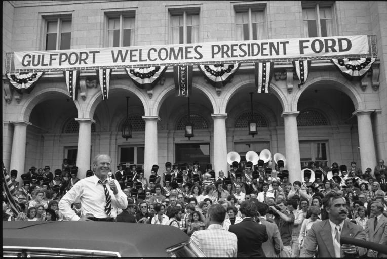 | Keywords: President Ford during a campaign stop - NARA - 7027915.jpg President Gerald Ford greets well-wishers during a campaign stop in Gulfport Mississippi 7027915 Creator Karl Schumacher Gerald R Ford Presidential Library http //www fordlibrarymuseum gov/avproj/campaign asp B1654-07 Institution Gerald R Ford Presidential Library 1976-09-26 Gerald R Ford Presidential Library and Museum-cooperation PD-USGov 1976 Campaign photo kit at the Gerald R Ford Presidential Library 1976 in Mississippi Gerald Ford in 1976 Gulfport Mississippi Gerald Ford presidential campaign 1976 Photographs by Karl Schumacher |