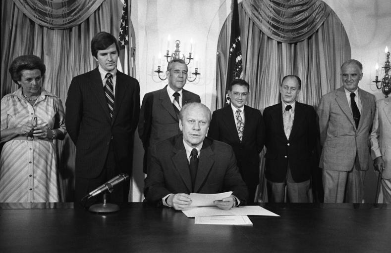 | Keywords: President Ford prior to signing S.3735, the 1976 National Swine Flu Immunization Program - NARA - 7064717.jpg This photograph depicts President Gerald Ford making remarks prior to signing S 3735 authorizing the 1976 National Swine Flu Immunization Program Also shown are l-r Department of Health Education and Welfare HEW Undersecretary Marjorie Lynch HEW Secretary F David Mathews U S Rep Tim Lee Carter R-KY Assistant Secretary for Health HEW Dr Theodore Cooper HEW General Counsel William H Taft IV and HEW Assistant General Counsel Bernard Feiner 7064717 Creator Karl Schumacher Gerald R Ford Presidential Library http //www fordlibrarymuseum gov/avproj/swineflu asp B1030-07A Institution Gerald R Ford Presidential Library 1976-08-12 Gerald R Ford Presidential Library and Museum-cooperation PD-USGov Uploaded with UploadWizard Swine Flu Program photo kit at the Gerald R Ford Presidential Library National Swine Flu Immunization Program Gerald Ford in 1976 Public speaking in the United States Marjorie Lynch F David Mathews Tim Lee Carter Theodore Cooper William H Taft IV Bernard Feiner |