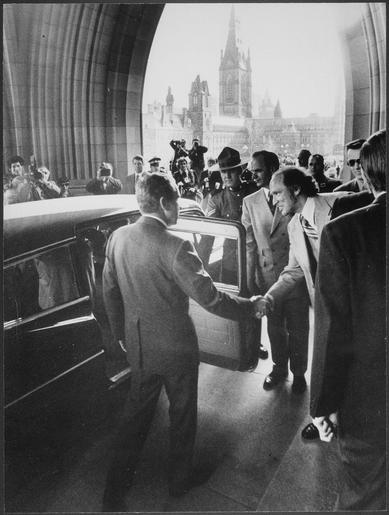 | Keywords: President Nixon departing from the Canadian Parliament building - NARA - 194764.tif Scope and content Pictured Richard M Nixon Pierre Trudeau Subject Heads of State - Canada General notes 194764 Local identifier NLRN-WHPO-8894-04 General Services Administration National Archives and Records Service Office of Presidential Libraries Office of Presidential Papers 01/20/1969 - ca 12/1974 Most Recent <br /> President 1969-1974 Nixon White House Photo Office 1969 - 1974 Most Recent NARA-Author Schumaker Byron E ca 1935- Photographer 8451340 <br /> Richard Nixon Library NLRN 18001 Yorba Linda Boulevard Yorba Linda CA 92886 1972-04-14 Record group Collection RN-WHPO White House Photo Office Collection Nixon Administration 01/20/1969 - 08/09/1974 Record group ARC 1179 Nixon White House Photographs compiled 01/20/1969 - 08/09/1974 documenting the period 08/08/1968 - 08/09/1974 Series ARC 194277 File unit File unit ARC Variant control numbers NAIL Control Number NLNP-WHPO-MPF-8894 04 yes Other versions NARA-cooperation PD-USGov Pierre Elliott Trudeau 1972 in Ottawa Events on Parliament Hill 1972 in politics of Canada Richard Nixon in foreign countries Richard Nixon with national leaders |