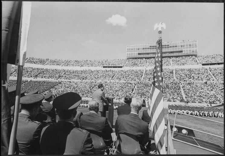 | Keywords: President Nixon disembarks from Air Force One on Midway Island - NARA - 194291.tif Scope and content Subject Trip to Pacific - 1969 General notes 194291 Local identifier NLRN-WHPO-C1232-11 General Services Administration National Archives and Records Service Office of Presidential Libraries Office of Presidential Papers 01/20/1969 - ca 12/1974 Most Recent <br /> President 1969-1974 Nixon White House Photo Office 1969 - 1974 Most Recent NARA-Author Atkins Oliver F 1916-1977 Photographer 8451334 <br /> Richard Nixon Library NLRN 18001 Yorba Linda Boulevard Yorba Linda CA 92886 1969-07-07 Record group Collection RN-WHPO White House Photo Office Collection Nixon Administration 01/20/1969 - 08/09/1974 Record group ARC 1179 Nixon White House Photographs compiled 01/20/1969 - 08/09/1974 documenting the period 08/08/1968 - 08/09/1974 Series ARC 194277 File unit File unit ARC Variant control numbers NAIL Control Number NLNP-WHPO-MPF-C1232 11 yes Other versions NARA-cooperation PD-USGov Photographs by Ollie Atkins |