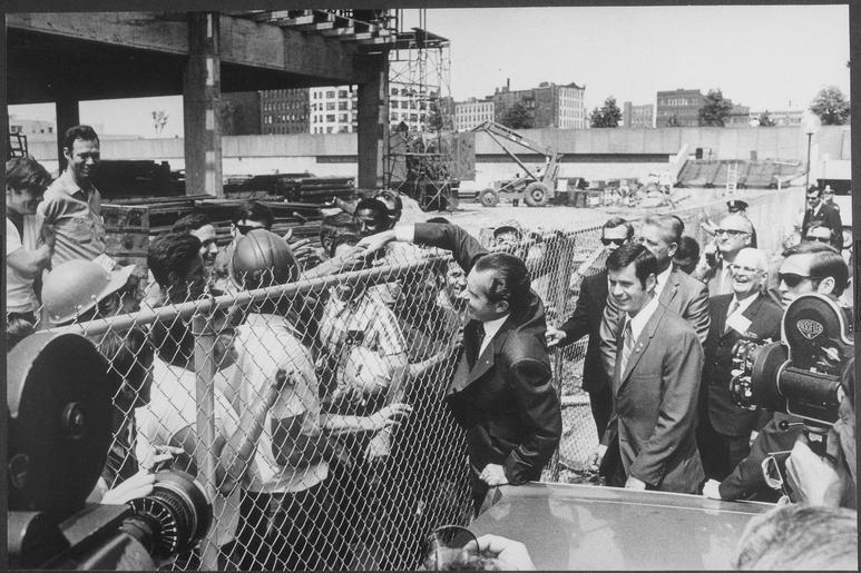 | Keywords: President Nixon shaking hands with well wishers at the Monroe County Airport, in Rochester, NY - Subject, Labor - NARA - 194725.tif Scope and content General notes 194725 Local identifier NLRN-WHPO-6660-05A General Services Administration National Archives and Records Service Office of Presidential Libraries Office of Presidential Papers 01/20/1969 - ca 12/1974 Most Recent <br /> President 1969-1974 Nixon White House Photo Office 1969 - 1974 Most Recent NARA-Author Schumaker Byron E ca 1935- Photographer 8451340 <br /> Richard Nixon Library NLRN 18001 Yorba Linda Boulevard Yorba Linda CA 92886 1972-07-18 Record group Collection RN-WHPO White House Photo Office Collection Nixon Administration 01/20/1969 - 08/09/1974 Record group ARC 1179 Nixon White House Photographs compiled 01/20/1969 - 08/09/1974 documenting the period 08/08/1968 - 08/09/1974 Series ARC 194277 File unit File unit ARC Variant control numbers NAIL Control Number NLNP-WHPO-MPF-6660 05A yes Other versions NARA-cooperation PD-USGov Greater Rochester International Airport Richard Nixon shaking hands July 1972 in the United States 1972 in New York Richard Nixon in 1972 |