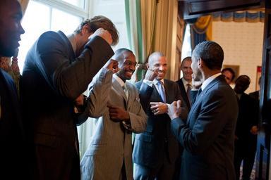 Keywords: President Obama meeting Jason Terry, Jason Kidd.jpg en President Barack Obama jokes with members of the Dallas Mavericks in the Green Room of the White House before honoring the team and their 2011 NBA Championship victory Jan 9 2012 Official White House Photo by Pete Souza 2012-01-09 http //www flickr com/photos/whitehouse/6893072613/ http //www flickr com/photos/whitehouse/ The White House's photostream PD-USGov Uploaded with UploadWizard Jason Terry Jason Kidd Barack Obama in 2011 Dirk Nowitzki Green Room White House Rick Carlisle Mark Cuban Barack Obama with sportspeople Photographs by Pete Souza NBA teams at White House |