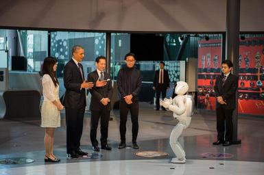 Keywords: President Obama Watches ASIMO the Humanoid Robot - Flickr - East Asia and Pacific Media Hub (4).jpg TOKYO Japan April 24 2014 U S President Barack Obama with Executive Director Mamoru Mohri of the Miraikan the National Museum of Emerging Science Innovation and Japanese students enjoys the performance of ASIMO the humanoid robot during his visit to the museum State Department photo by William Ng/Public Domain https //www flickr com/photos/eapmediahub/13990399562/ President Obama Watches ASIMO the Humanoid Robot 2014-04-24 15 13 https //www flickr com/people/56477391 N06 East Asia and Pacific Media Hub U S Department of State PD-USGov East Asia and Pacific Media Hub https //flickr com/photos/56477391 N06/13990399562 2016-12-16 18 12 23 United States Government Work Uncategorized 2016 December 16 Files_from_East_Asia_and_Pacific_Media_Hub_U S _Department_of_State_Flickr_streamFiles_uploaded_by_Josve05a_ U S _DoS