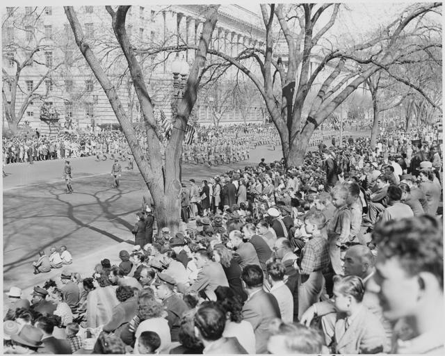 | Keywords: President Truman attends the Army Day parade in Washington, D. C. This is a distance view of the parade. - NARA - 199609.jpg Scope and content General notes 199609 Local identifier National Archives and Records Administration Office of Presidential Libraries Harry S Truman Library 04/01/1985 - NARA-Author Rowe Abbie 1905-1967 Photographer 8451352 <br /> Harry S Truman Library NLHST 500 West U S Highway 24 Independence MO 64050-1798 1947-04-07 Record group Collection HST-AVC Audiovisual Collection 1957 - 2006 Record group ARC 1207 Photographs Relating to the Administration Family and Personal Life of Harry S Truman compiled 1957 - 2004 documenting the period 1849 - 2004 Series ARC 198606 File unit File unit ARC Variant control numbers NAIL Control Number NLT-AVC-PHT-73 2454 Other versions <gallery> File President_Truman_attends_the_Army_Day_parade_in_Washington _D _C _This_is_a_distance_view_of_the_parade _-_NARA_-_199609 tif tif File President_Truman_attends_the_Army_Day_parade_in_Washington _D _C _This_is_a_distance_view_of_the_parade _-_NARA_-_199609 jpg jpg </gallery> NARA-cooperation PD-USGov Photographs by Abbie Rowe Black and white photographs 1947 in Washington D C Military parades in the United States |